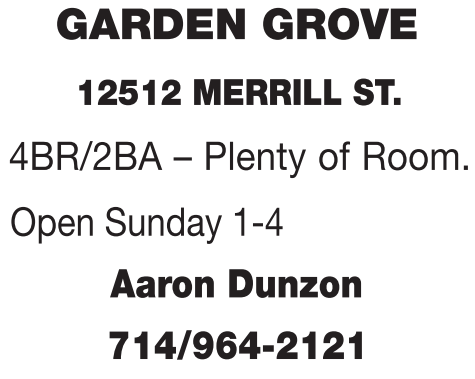 Open Sunday 1-4 Aaron Dunzon 714/964-2121