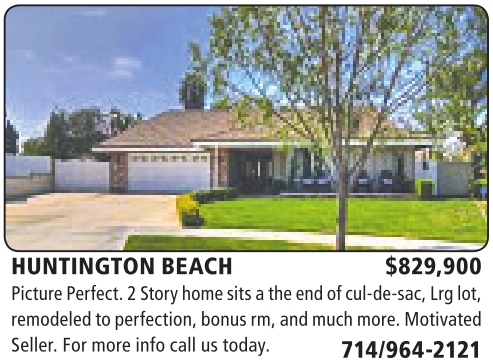 HUNTINGTON BEACH $829,900 PicturePerfect.2Story homesitsathe endofcul-de-sac, Lrglot, remodeledtoperfection, bonus rm,and muchmore.Motivated Seller.For more infocallustoday. 714/964-2121