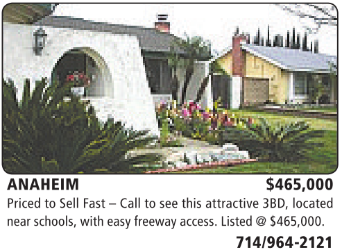 ANAHEIM $465,000 Priced to Sell Fast –Call tosee this attractive 3BD, located near schools,witheasyfreeway access.Listed@$465,000.