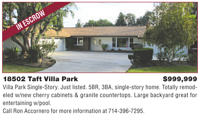 18502 Taft Villa Park $999,999 Villa Park Single-Story. Just listed. 5BR, 3BA, single-story home. Totally remodeled