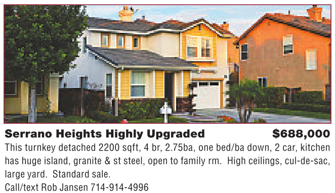 has huge island, granite &ststeel, open tofamily rm. High ceilings, cul-de-sac, largeyard. Standard sale. Call/text Rob Jansen 714-914-4996