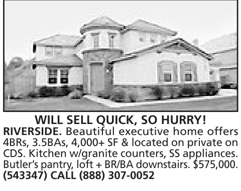 Butler’spantry,loft +BR/BA downstairs. $575,000. (543347) CALL (888) 307-0052