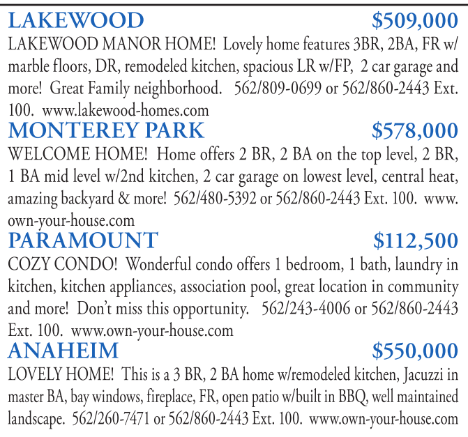 landscape. 562/260-7471 or 562/860-2443 Ext. 100. www.own-your-house.com