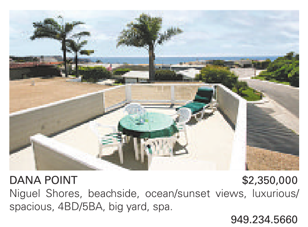 DANA POINT $2,350,000 Niguel Shores, beachside, ocean/sunset views, luxurious/ spacious, 4BD/5BA, big yard, spa.
