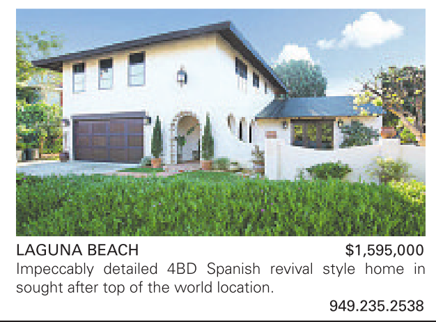 LAGUNA BEACH $1,595,000 Impeccably detailed 4BD Spanish revival style home in sought after top of the world location.