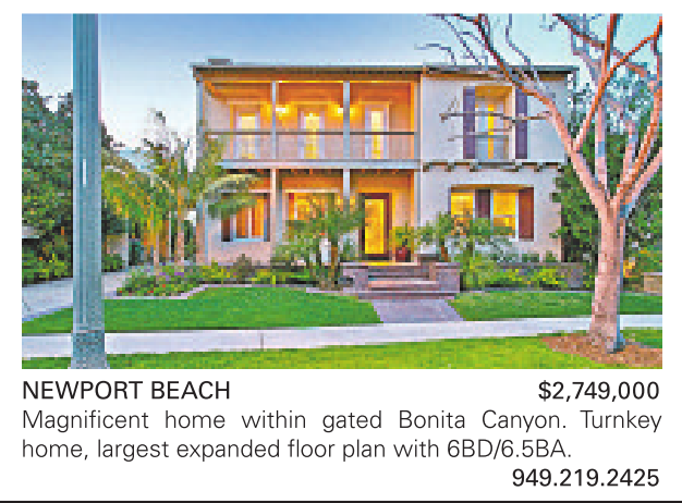 NEWPORT BEACH $2,749,000 Magnificent home within gated Bonita Canyon. Turnkey home, largest expanded floor plan with 6BD/6.5BA.