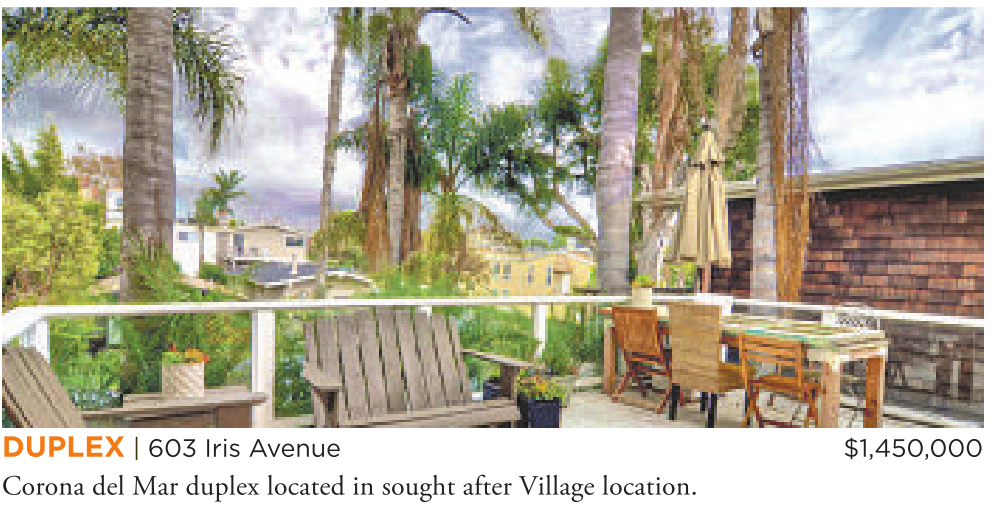 | 603 Iris Avenue $1,450,000 Corona del Mar duplex located in sought after Village location.