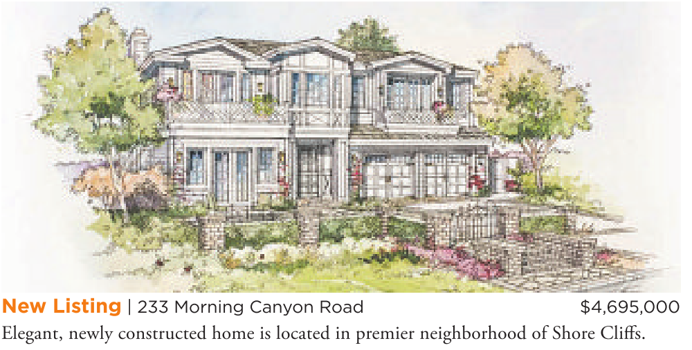 New Listing | 233 Morning Canyon Road $4,695,000 Elegant, newly constructed home is located in premier neighborhood of Shore Cliffs.