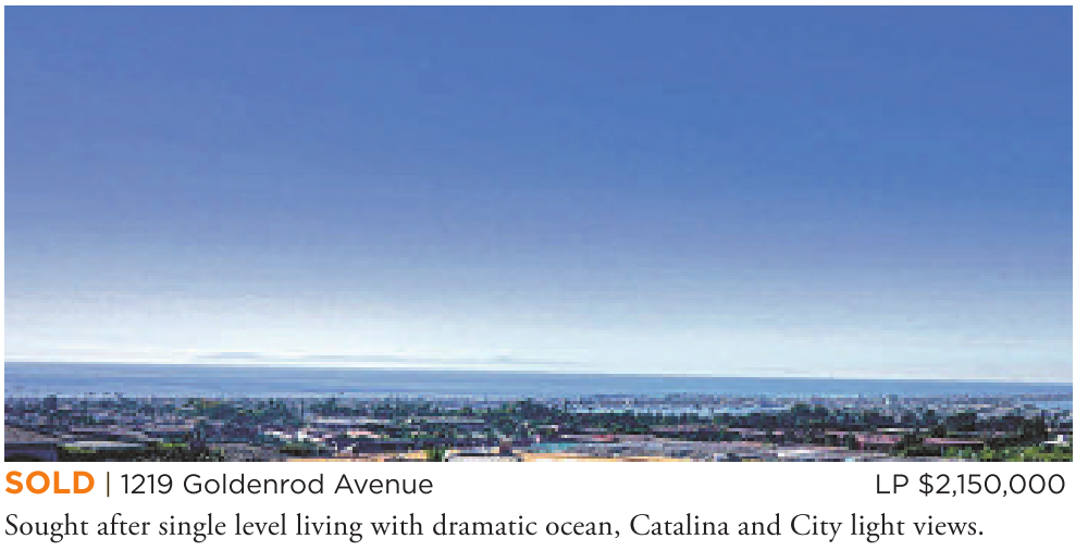 SOLD | 1219 Goldenrod Avenue LP $2,150,000 Sought after single level living with dramatic ocean, Catalina and City light views.