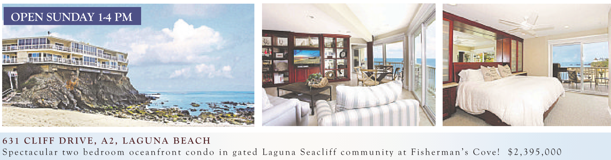 631 CLIFF DRIVE, A2, LAGUNA BEACH Spectacular two bedroom oceanfront condo in gated Laguna Seacliff community at Fisherman’s Cove! $2,395,000