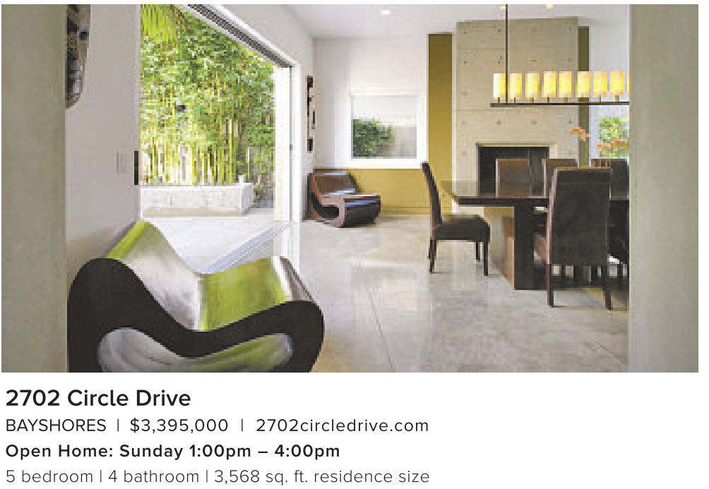 BAYSHORES | $3,395,000 | 2702circledrive.com Open Home: Sunday 1:00pm – 4:00pm 5 bedroom | 4 bathroom | 3,568 sq. ft. residence size