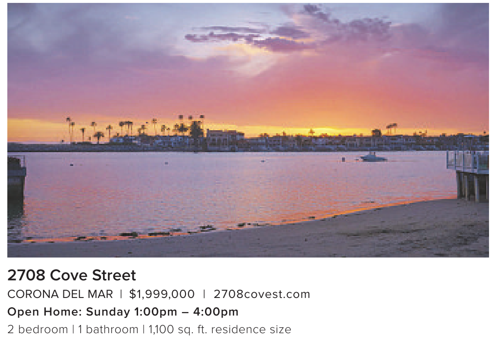 CORONA DEL MAR | $1,999,000 | 2708covest.com Open Home: Sunday 1:00pm – 4:00pm 2 bedroom | 1 bathroom | 1,100 sq. ft. residence size