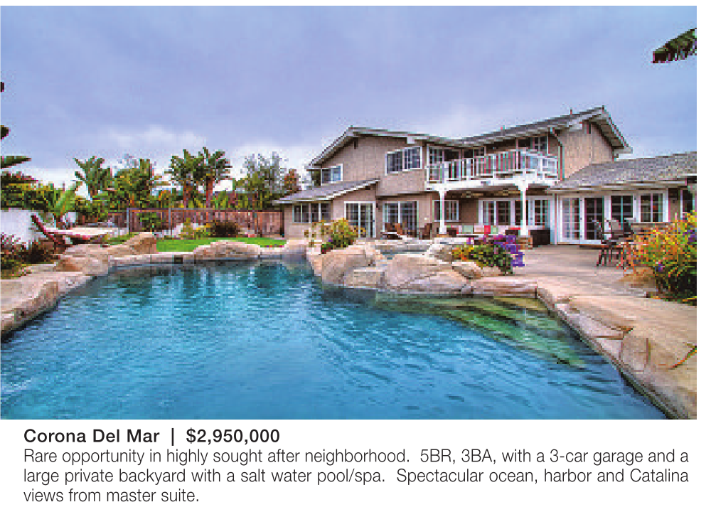 Corona Del Mar | $2,950,000 Rare opportunity in highly sought after neighborhood. 5BR, 3BA, with a 3-car garage and a large private backyard with a salt water pool/spa. Spectacular ocean, harbor and Catalina views from master suite.