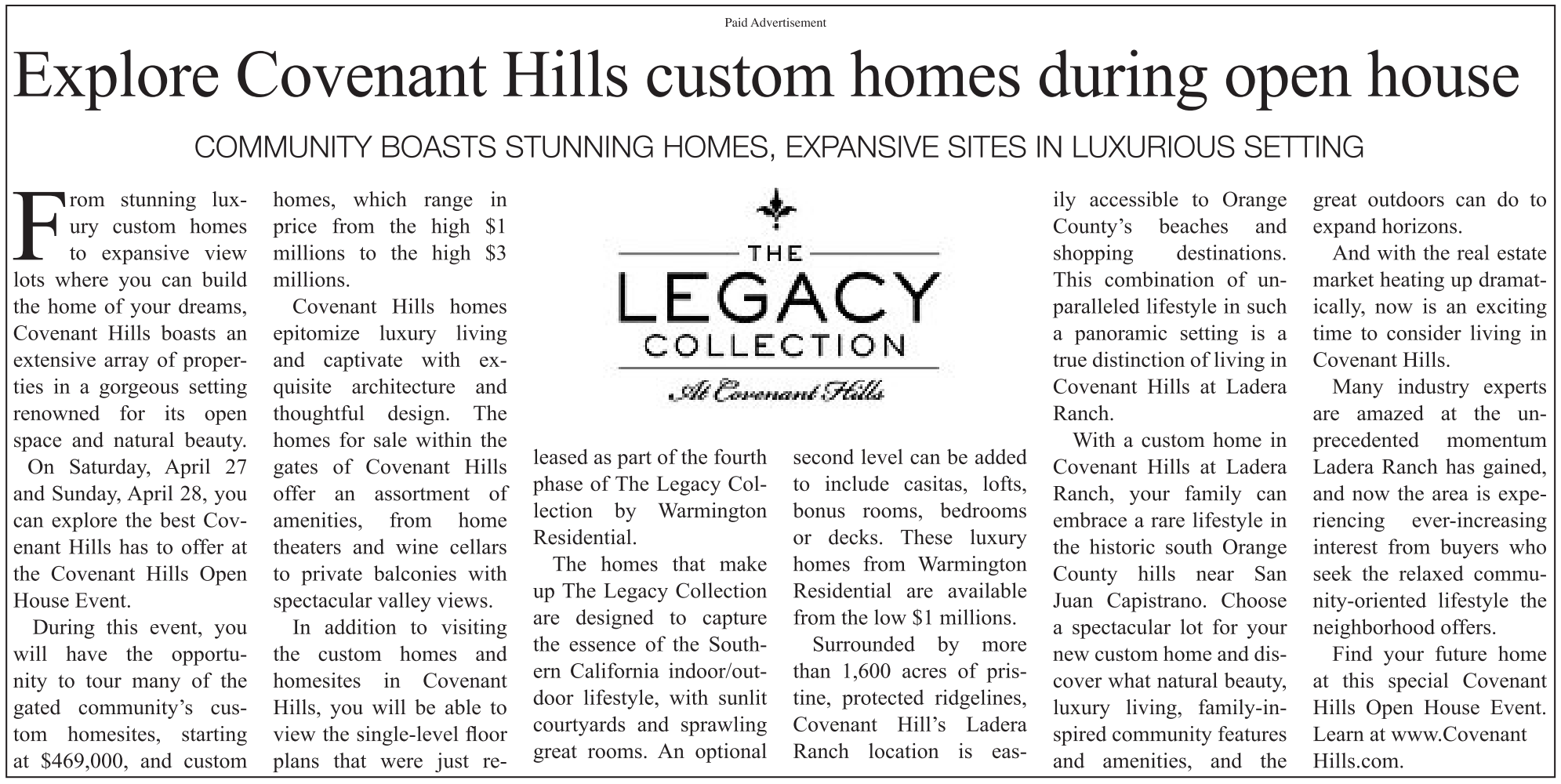 Find your future home at this special Covenant Hills Open House Event. Learn at www.Covenant Hills.com.