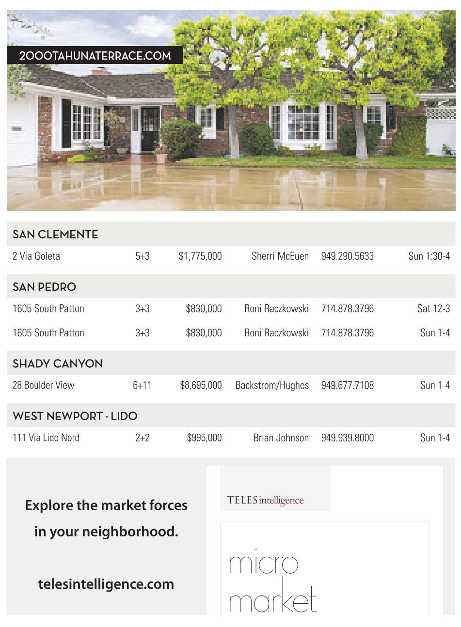 2Via Goleta 5+3 $1,775,000 Sherri McEuen 949.290.5633 Sun 1:30-4