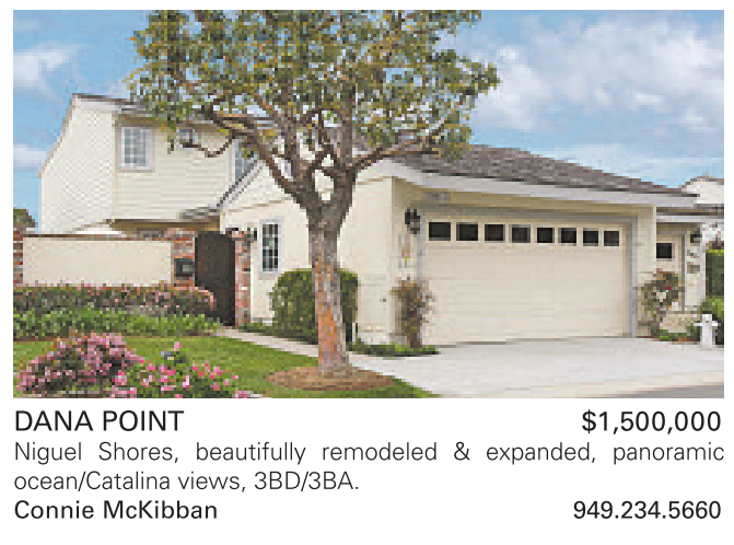 DANA POINT $1,500,000 Niguel Shores, beautifully remodeled & expanded, panoramic ocean/Catalina views, 3BD/3BA. Connie McKibban 949.234.5660