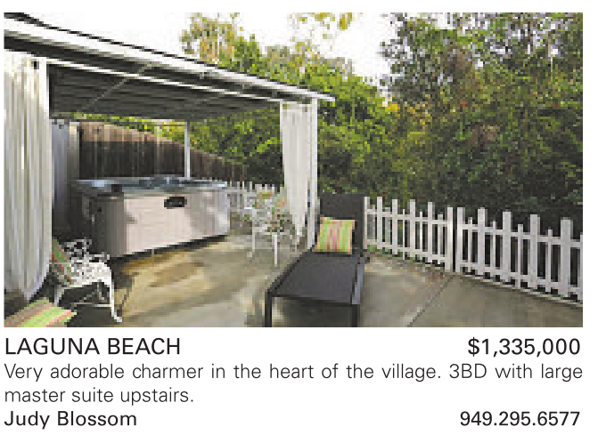 LAGUNA BEACH $1,335,000 Very adorable charmer in the heart of the village. 3BD with large master suite upstairs. Judy Blossom 949.295.6577