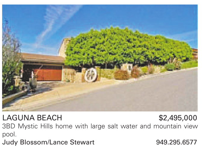 LAGUNA BEACH $2,495,000 3BD Mystic Hills home with large salt water and mountain view pool. Judy Blossom/Lance Stewart 949.295.6577