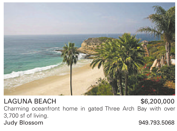 LAGUNA BEACH $6,200,000 Charming oceanfront home in gated Three Arch Bay with over 3,700 sf of living. Judy Blossom 949.793.5068