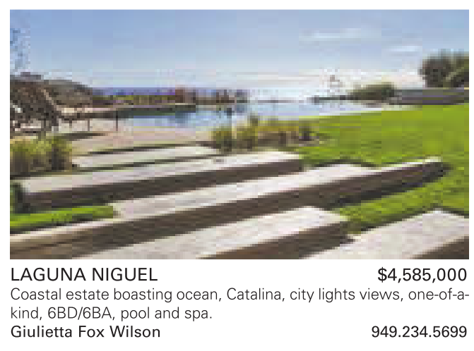 LAGUNA NIGUEL $4,585,000 Coastal estate boasting ocean, Catalina, citylights views, one-of-akind, 6BD/6BA, pool and spa.