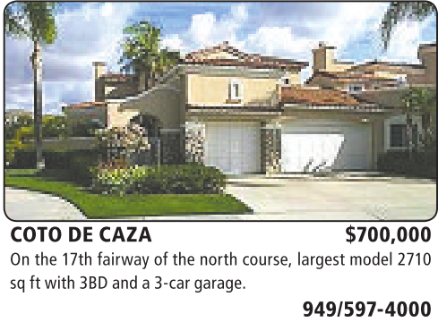COTO DE CAZA $700,000 On the 17th fairway ofthe north course, largest model 2710 sq ft with 3BDand a3-car garage.