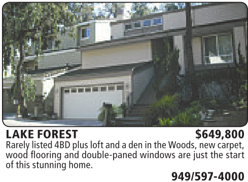 LAKE FOREST $649,800 Rarelylisted4BD plus loft andaden in theWoods, new carpet, wood flooring and double-paned windows are just the start of this stunninghome.