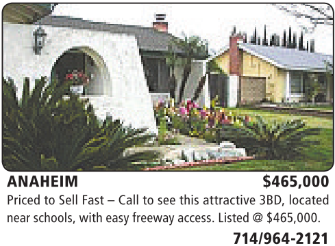ANAHEIM $465,000 Priced to Sell Fast –Call tosee this attractive 3BD, located near schools,witheasyfreeway access.Listed@$465,000.