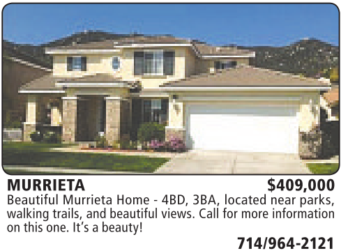 MURRIETA $409,000 Beautiful Murrieta Home - 4BD, 3BA, located near parks, walking trails, and beautiful views. Call for more information on this one.It’sabeauty!
