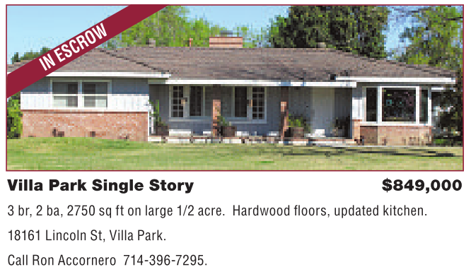 Call Ron Accornero 714-396-7295.
