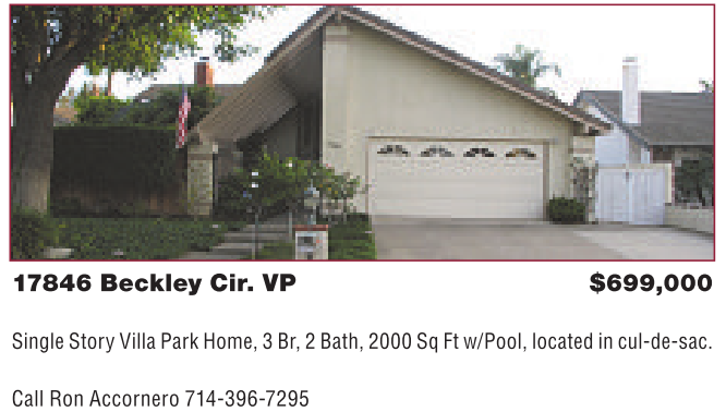 SingleStory VillaParkHome, 3Br, 2Bath, 2000 Sq Ft w/Pool, locatedincul-de-sac.