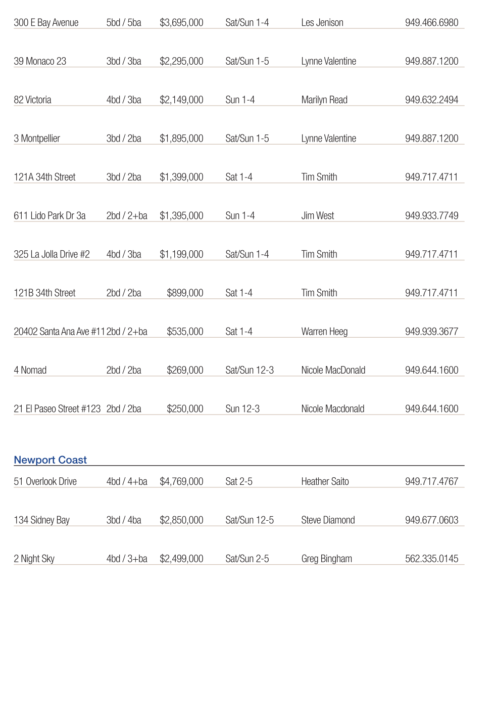 39 Monaco 23 3bd /3ba $2,295,000 Sat/Sun 1-5 Lynne Valentine 949.887.1200
