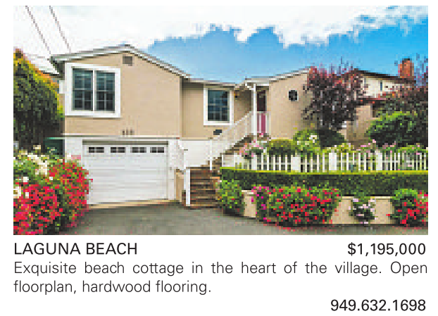LAGUNA BEACH $1,195,000 Exquisite beach cottage in the heart of the village. Open floorplan, hardwood flooring.