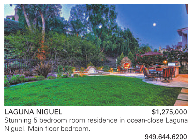 LAGUNA NIGUEL $1,275,000 Stunning 5 bedroom room residence in ocean-close Laguna Niguel. Main floor bedroom.