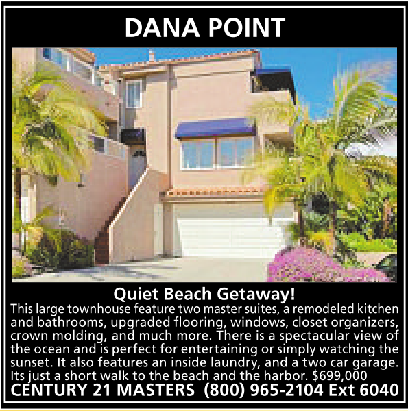 sunset. Italso features an inside laundry, and atwo car garage. Its just ashort walk to the beach and the harbor. $699,000