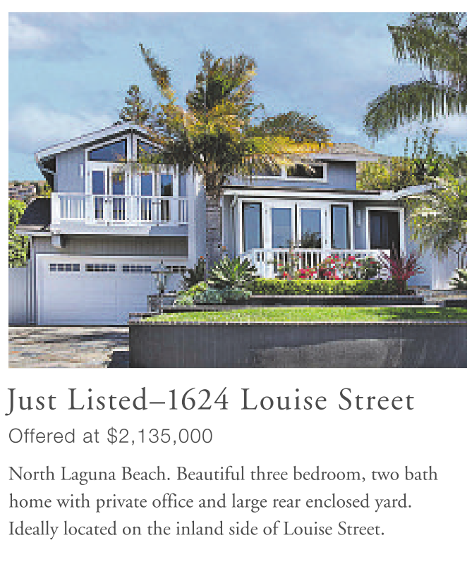 North Laguna Beach. Beautiful three bedroom, two bath home with private office and large rear enclosed yard. Ideally located on the inland side of Louise Street.