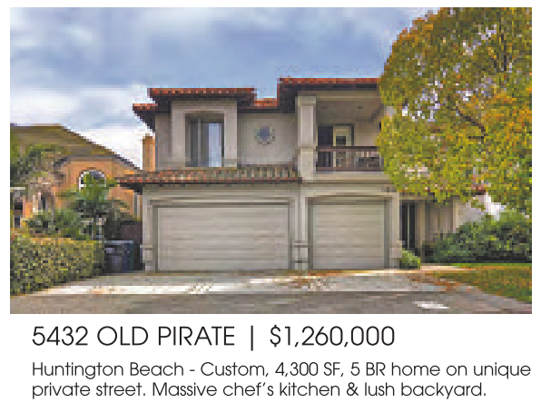 Huntington Beach -Custom, 4,300 SF, 5BRhome on unique private street. Massive chef’s kitchen &lush backyard.