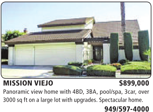 MISSION VIEJO $899,000 Panoramic view home with 4BD, 3BA, pool/spa, 3car, over 3000 sq ft on alarge lotwithupgrades. Spectacularhome.