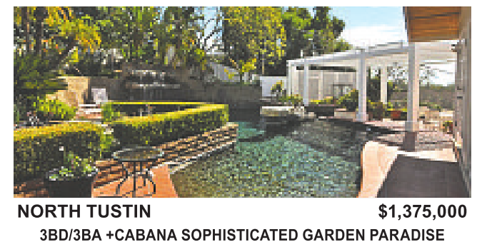 NORTH TUSTIN $1,375,000 3BD/3BA +CABANA SOPHISTICATED GARDEN PAR