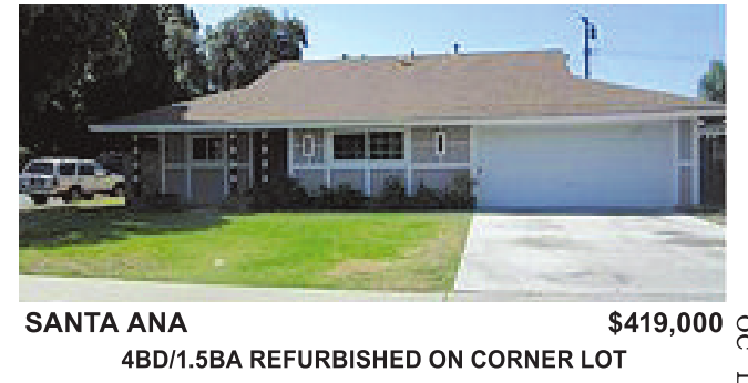 SANTA ANA $419,000 4BD/1.5BA REFURBISHED ON CORNER LOT