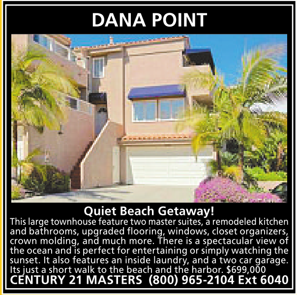 sunset. Italso features an inside laundry, and atwo car garage. Its just ashort walk to the beach and the harbor. $699,000