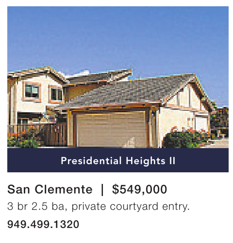 San Clemente | $549,000 3 br 2.5 ba, private courtyard entry. 949.499.1320