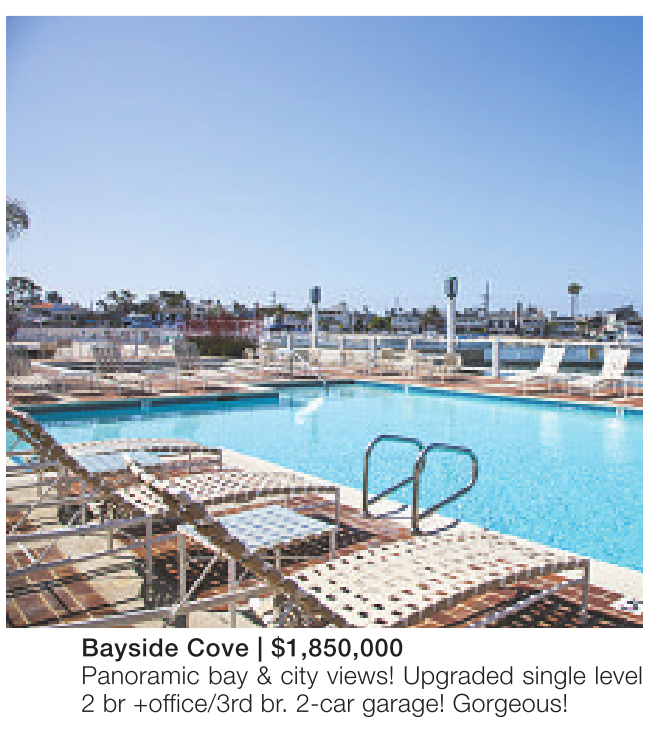 Bayside Cove | $1,850,000 Panoramic bay & city views! Upgraded single level 2 br +office/3rd br. 2-car garage! Gorgeous!