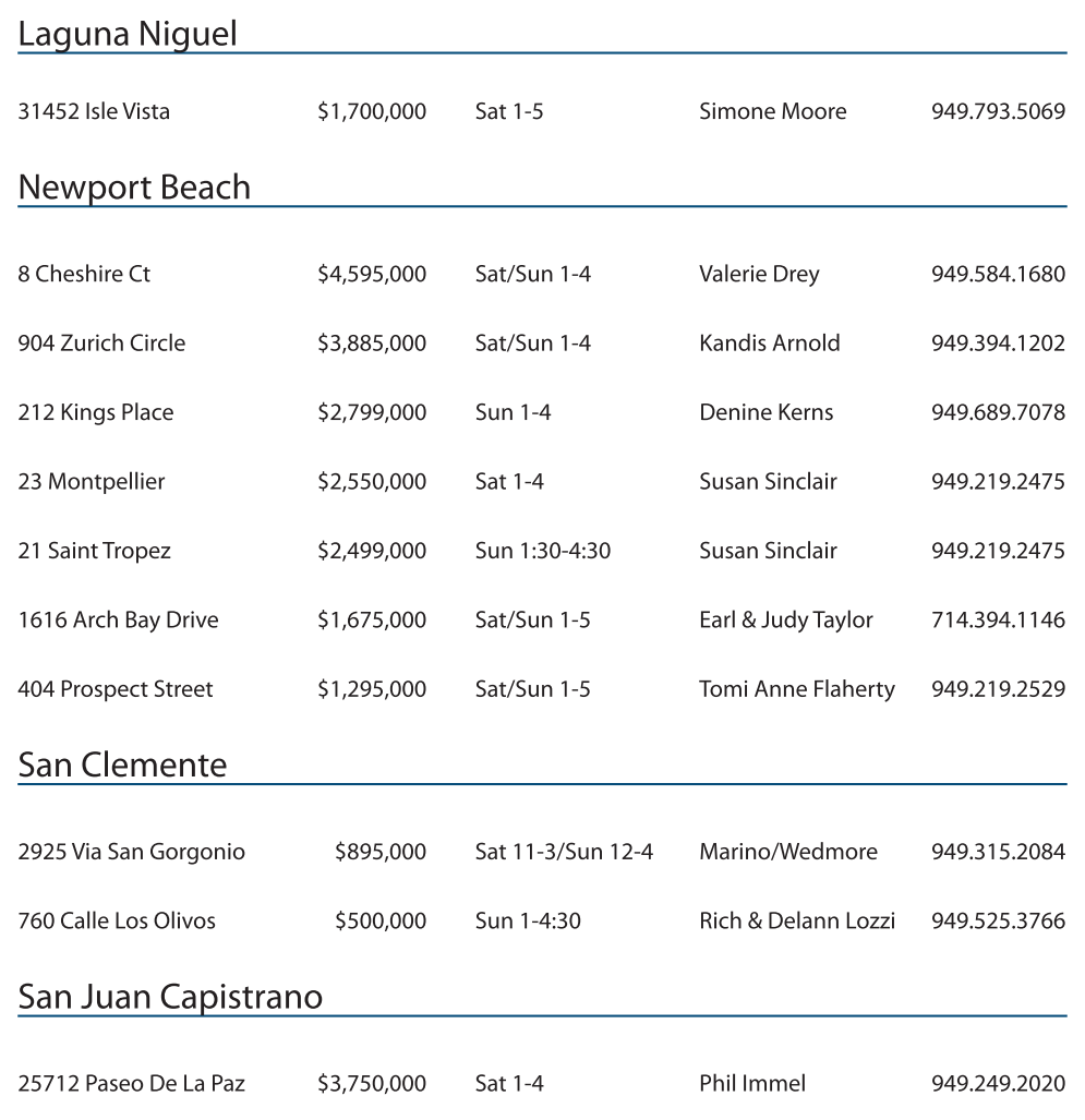 21 Saint Tropez $2,499,000 Sun 1:30-4:30 Susan Sinclair 949.219.2475