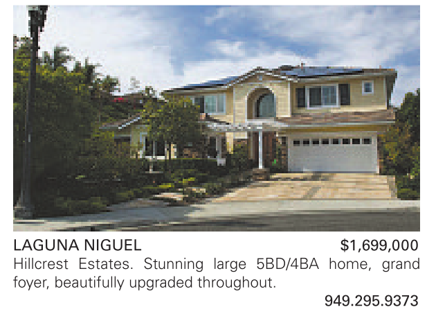 LAGUNA NIGUEL $1,699,000 Hillcrest Estates. Stunning large 5BD/4BA home, grand foyer, beautifully upgraded throughout.