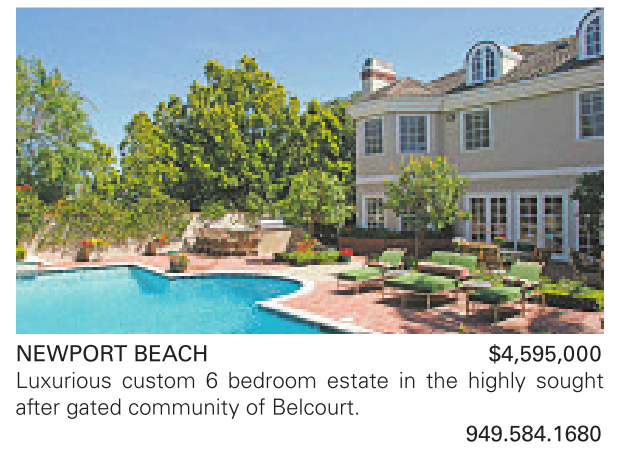 NEWPORT BEACH $4,595,000 Luxurious custom 6 bedroom estate in the highly sought after gated community of Belcourt.