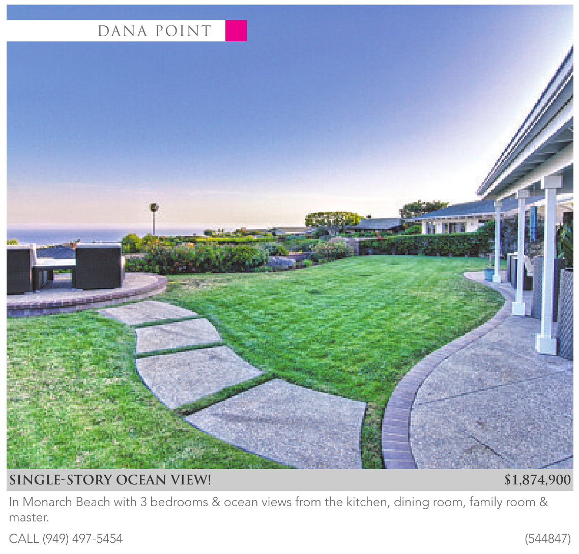 In Monarch Beach with 3 bedrooms & ocean views from the kitchen, dining room, family room & master.