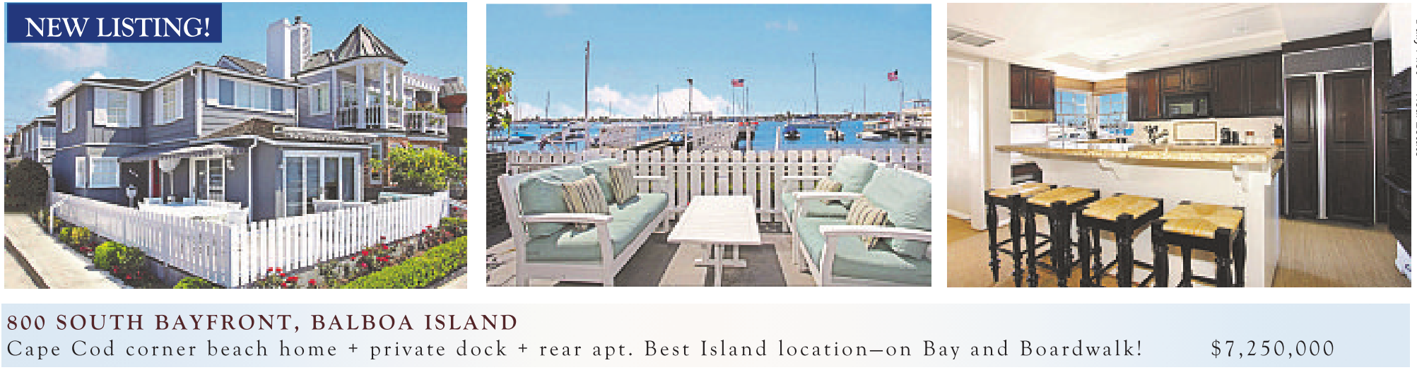 800 SOUTH BAYFRONT, BALBOA ISLAND Cape Cod corner beach home + private dock + rear apt. Best Island location—on Bay and Boardwalk! $7,250,000