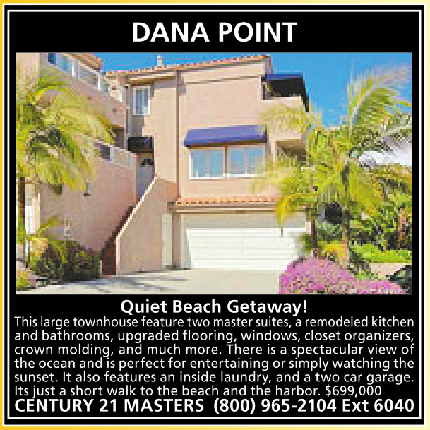 sunset. Italso features an inside laundry, and atwo car garage. Its just ashort walk to the beach and the harbor. $699,000