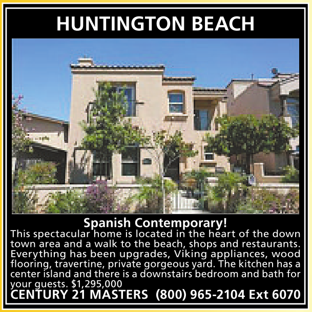 flooring, travertine, private gorgeous yard. The kitchen has acenter island and there is adownstairs bedroom and bath for your guests. $1,295,000 CENTURY 21 MASTERS (800) 965-2104 Ext 6070