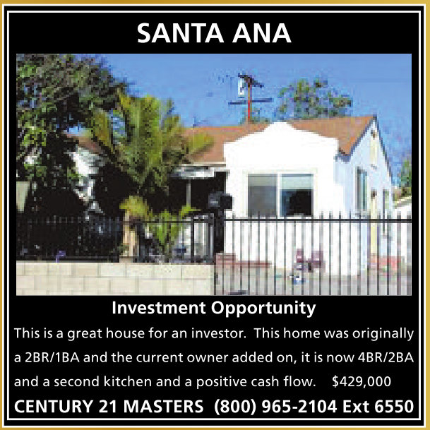 and asecond kitchen and apositive cash flow. $429,000 CENTURY 21 MASTERS (800) 965-2104 Ext 6550